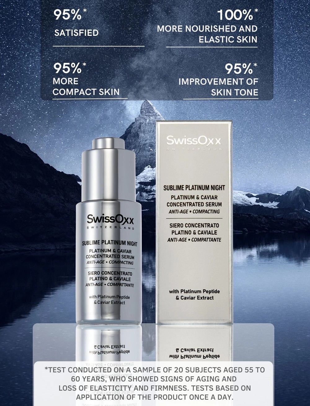 Sublime Platinum Night con acido ialuronico: una formula unica svizzera, per ripristinare il metabolismo della giovinezza della pelle.